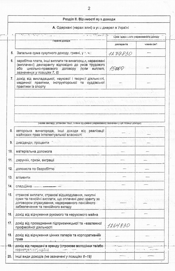Згідно з декларацією, сукупний дохід Летути в 2015 році склав 1,28 млн грн., з яких 15 тис грн. – зарплата, а решта 1,26 млн грн – дохід від провадження підприємницької діяльності. Члени родини Летути (вказані у декларації дружина та 4-річний син) торік нічого не заробили.