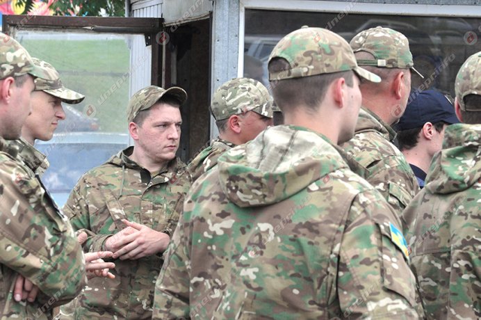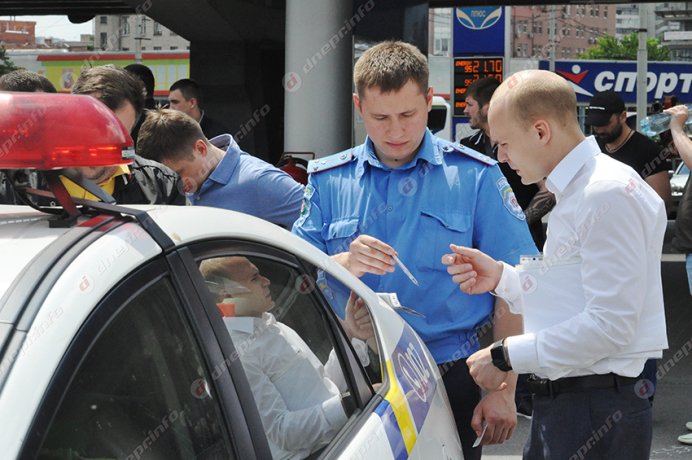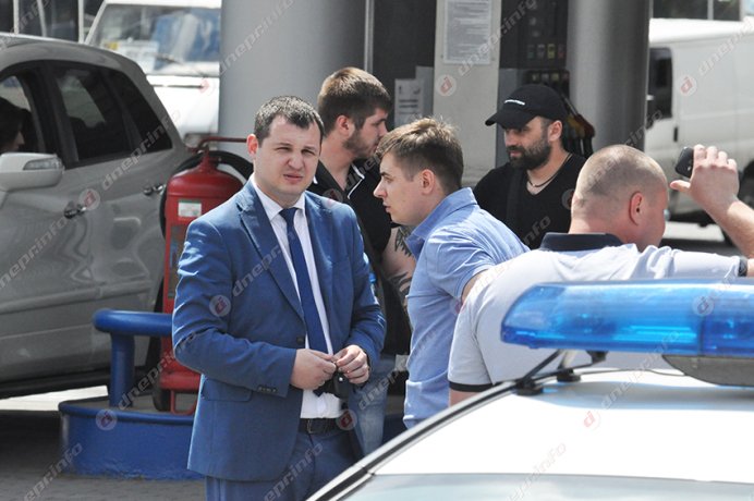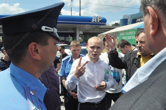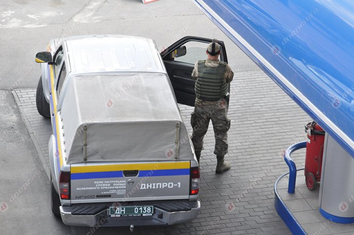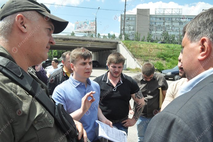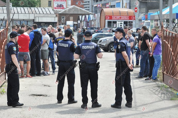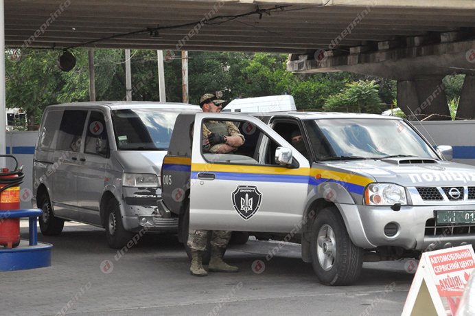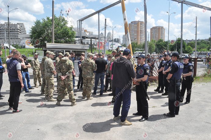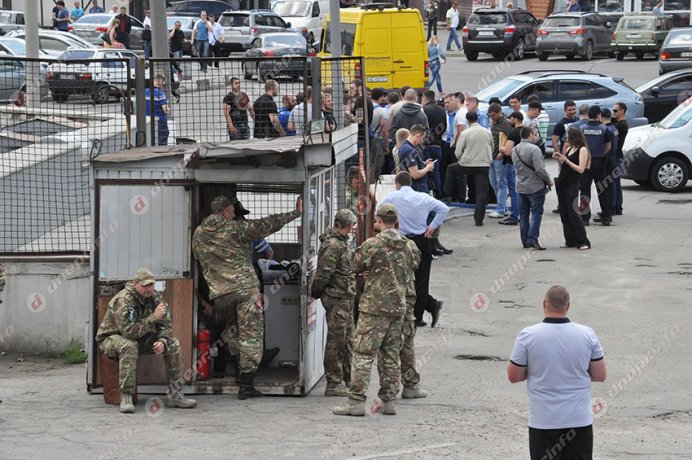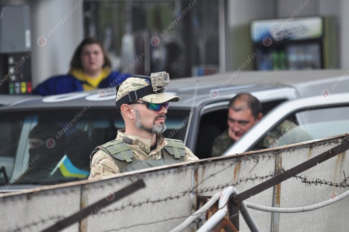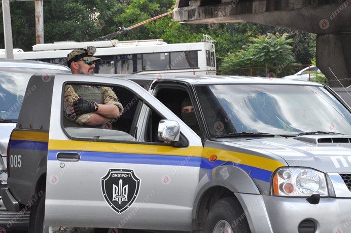 После этого активных действий с обеих сторон не предпринималось, хотя недалеко от парковки стояла машина с несколькими людьми, у которых были автоматы. Автомобиль очень напоминал инкассаторский микроавтобус «ПриватБанка», при этом, с донецкими номерами. Как выяснилось, это были представители спецподразделения полиции особого назначения. Две машины полка «Днепр-1» приехали для поддержания общественного порядка.
