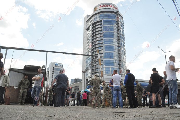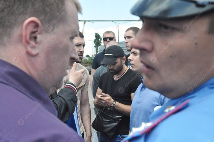 Муниципальная гвардия и группа парней без опознавательных знаков попытались вытолкать представителей «АЗОВ» и активистов с территории парковки. Последние так просто не сдавались, аргументируя свое нахождение на парковке тем, что это собственность города и общества. В свою очередь, парни в штатском объяснили, что они – владельцы автомобилей, которые стоят на парковке, и будут защищать своей имущество.