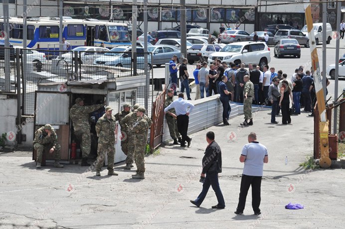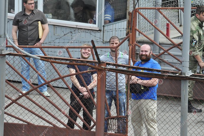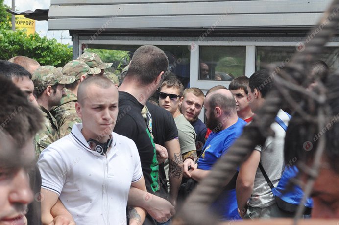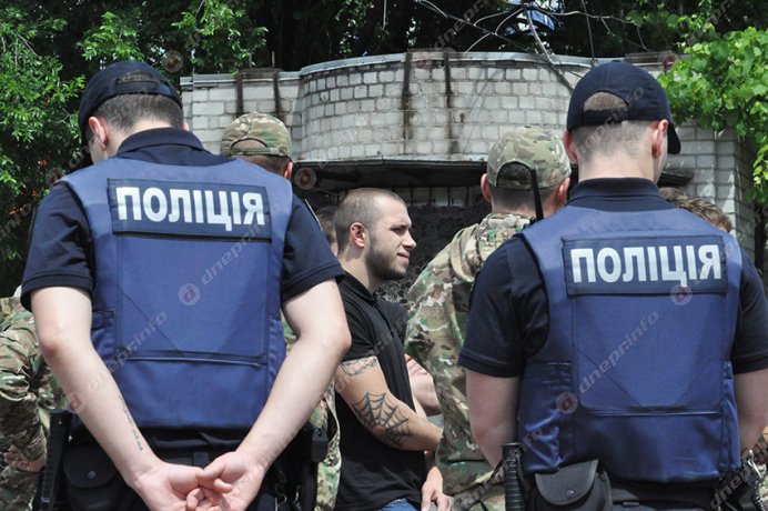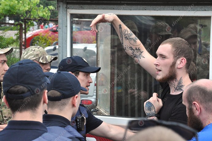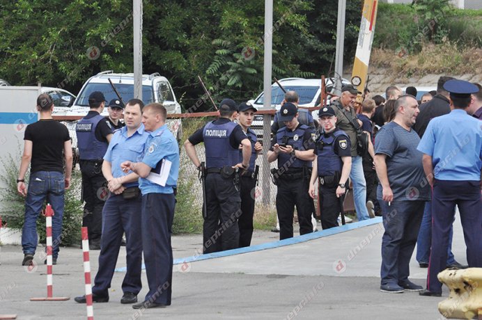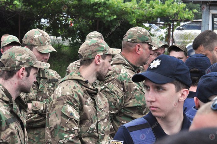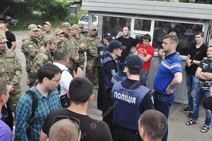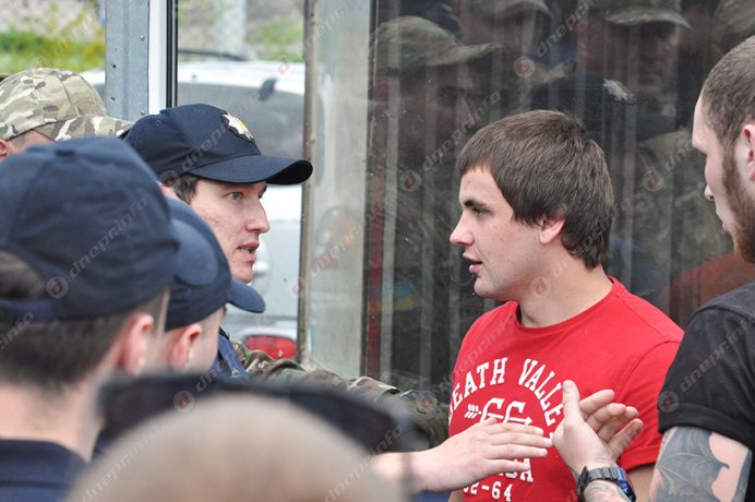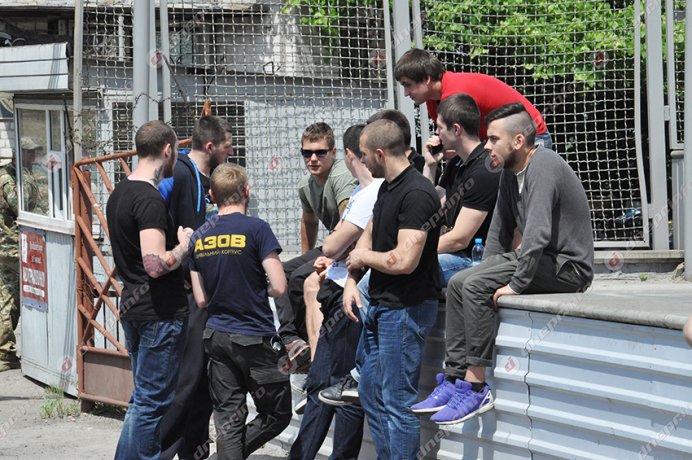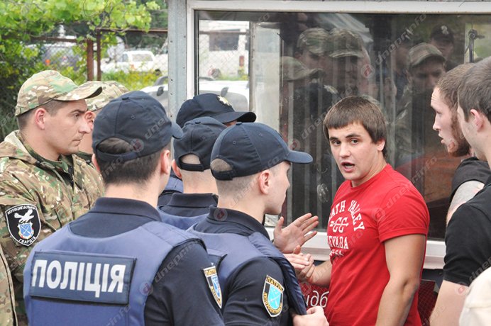 Полицейские разграничили стороны конфликта, и попросили уйти с территории всех, у кого не было документов – представителей «АЗОВ», активистов, и группу молодых людей в штатском, остаться могли только бойцы Муниципальной гвардии.