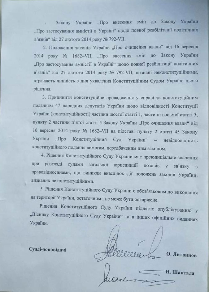 В СЕТИ ОБНАРОДОВАЛИ РЕЗОЛЮТИВНУЮ ЧАСТЬ РЕШЕНИЯ КСУ ПО ЗАКОНУ "ОБ ОЧИЩЕНИИ ВЛАСТИ"