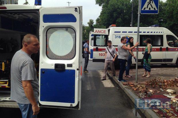 На Контрактовой площади в Киеве карниз здания упал на прохожих