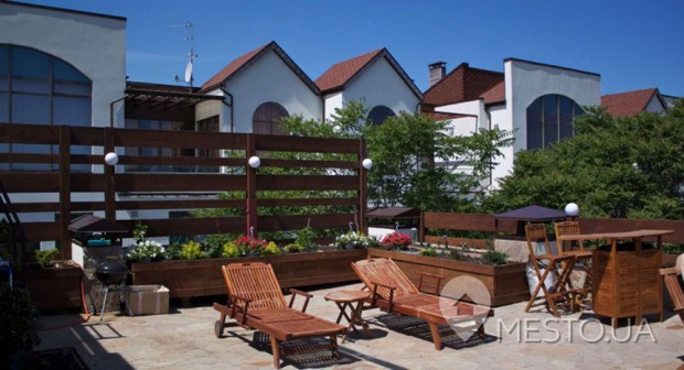 Квартира в трехэтажном таунхаусе с видом на Днепр включает гараж, балкон и две террасы.