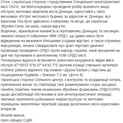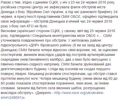 У СЦКК і в СММ ОБСЄ спростували інформацію проросійських бойовиків про нібито скоєні підрозділами Збройних сил України обстріли житлових кварталів Донецька, ву результаті яких були пошкоджені житлові будинки та дитяча поліклініка.