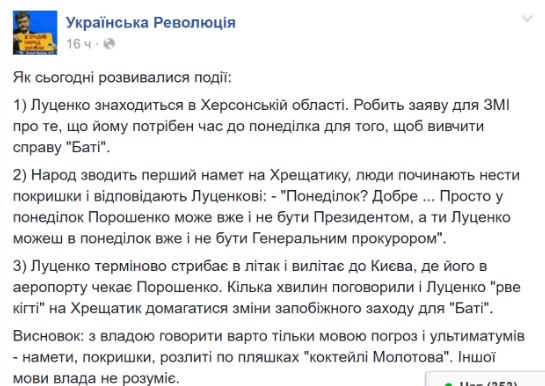 Свои выводы сделали и с другой стороны баррикад. В сообществе "Украинская революция" написали следующее: