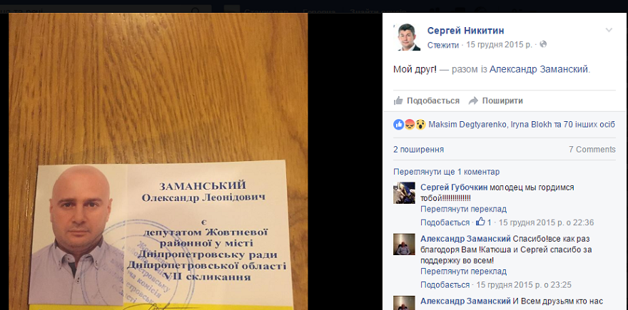 Помимо этого, Заманский является близким другом депутата Днепропетровского городского совета, организатора так называемой «Школы управления многоэтажек» –Сергея Никитина. Подтверждает это и сам Никитин.