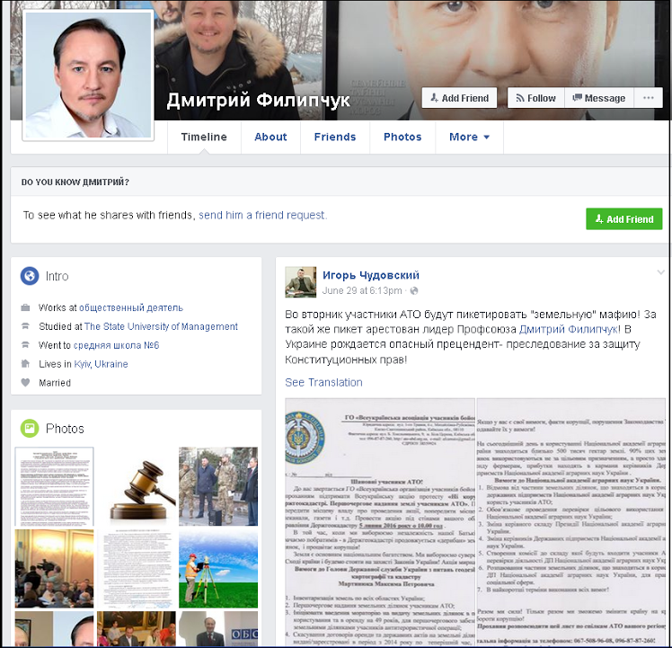 Даже из СИЗО можно работать против государства Украина и выполнять задания агрессора. Это доказывает Дмитрий Филипчук, глава Всеукраинского профсоюзного объединения "Демократичні профспілки України" и Всеукраинского профсоюза работников отрасли земельных отношений Украины, который, даже находясь в камере предварительного заключения, продолжает свою деятельность по подрыву государственного строя.