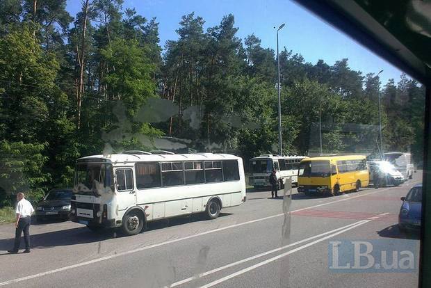 Как сообщает корреспондент LB.ua, около 30 человек на нескольких микроавтобусах приехали к КПП на Житомирской трассе с целью разбить палаточный городок. Однако от этой идеи отказались в виду превосходящих сил полиции (на месте заранее оказались не менее семи полицейских автобусов и два автозака). В итоге было решено разбивать лагерь с кухней, но палатки не ставить.