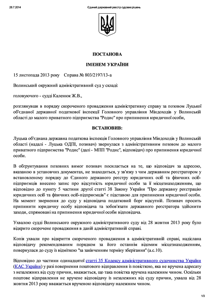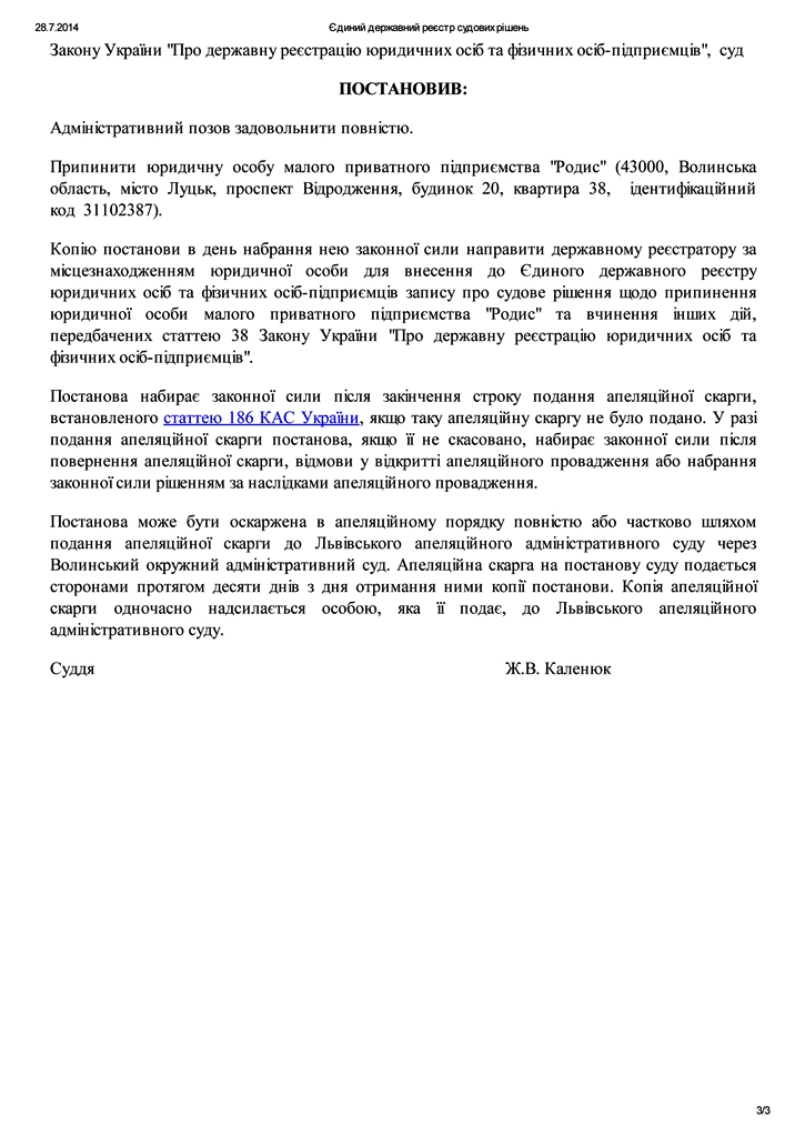Рішення суду у справі МПП «Родис» (збільшість натисканням мишки)