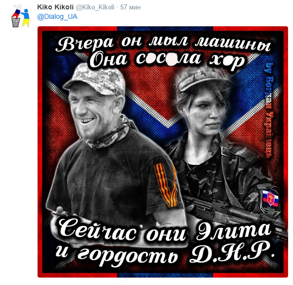“Мой хороший знакомый, который сделал мне много хорошего, сейчас воюет в Донбассе. Он знает о тебе много, чего не знают люди. Или ты забыла, как была “Канистрой”, или давно ты стала жить в Донецке и пить пиво в кафе, а не в своей Семеновке с друзьями? Много у тебя было друзей? Где они сейчас? Что делают? Наверное, делают землю твоей родины красивой? А ты? Ты женщина, а сама несешь войну. Ты почему нас судишь?! Тебе и твоей земле такого “процветания” как у нас!”- пожелал жене боевика Радик Якупов.