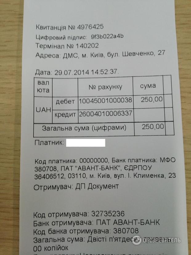 Вместе с платежами для ГМС сумма, в которую Светлане обошелся несрочный загранпаспорт, перевалила за 600 гривень. Из "удобств", которые Светлана получила за 250 грн – возможность оплатить квитанции не в банке, а тут же, в помещении, с помощью платежного терминала. Свои квитанции Светлана начала фотографировать - и получила замечание от персонала: почему-то сотрудникам ГП "Документ" очень не понравились такие действия клиентки.