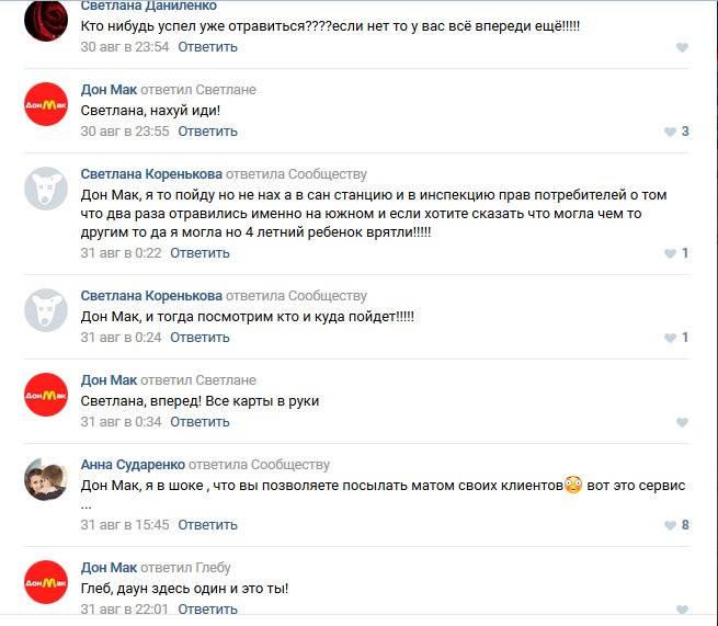 Переписка с клиентами отжатого в Донецке МакДональдса: Светлана, на х.. иди!