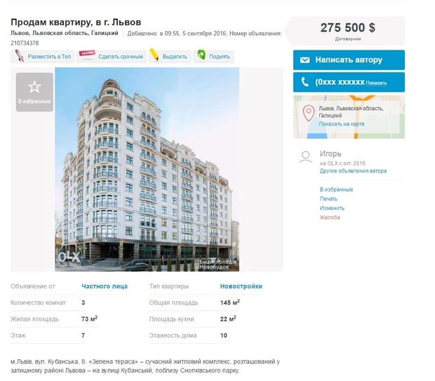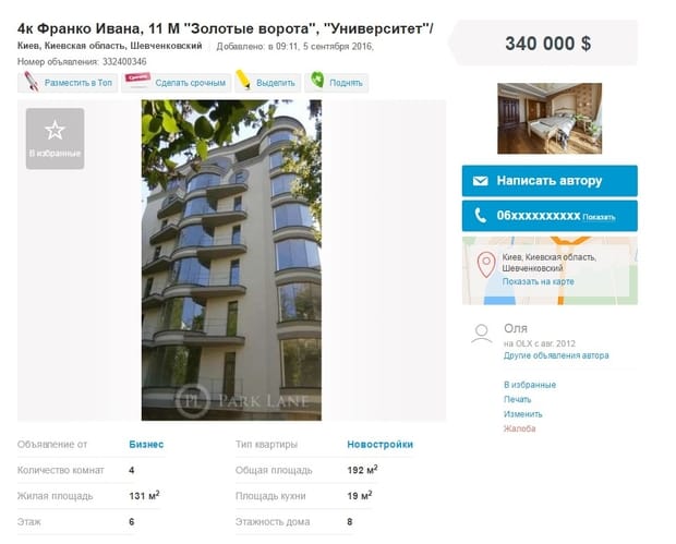 Кроме того, СМИ раскопали квартиру у метро "Шулявка", купленную в августе 2010 года.