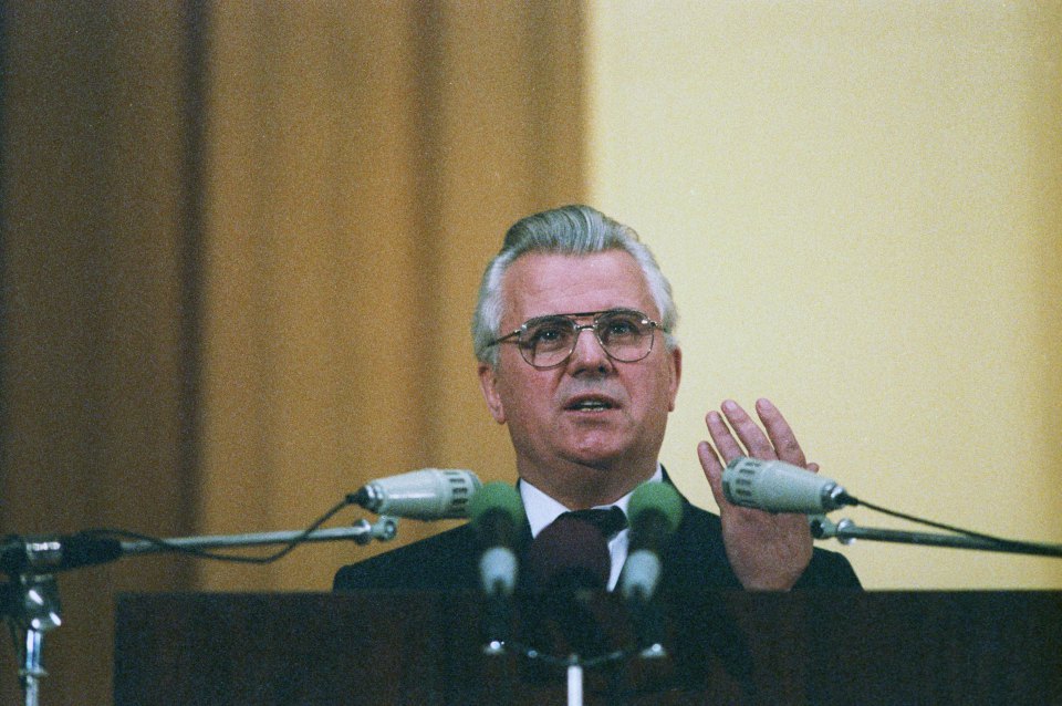 Президент Украины Леонид Кравчук выступает на III съезде народного движения «Рух». Киев, февраль 1992