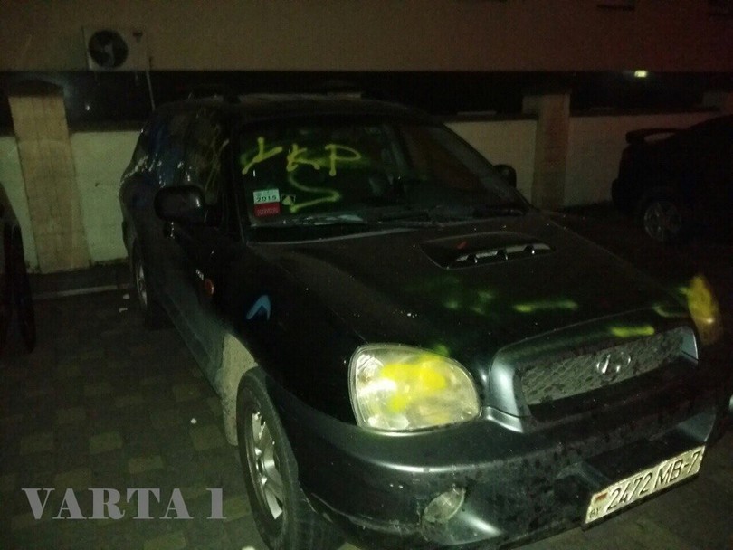 Жители Львова заметили автомобиль с висящей в салоне георгиевской лентой. За это машину, владелицей которой оказалась гражданка Беларуси, неизвестные раскрасили в цвета украинского флага.