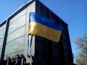 "Сегодня, благодаря нашим защитникам товарный поезд, двинувший из Счастья, сделав остановки в пгт. Станица Луганская, отправился с подарком в Луганск (Государственный флаг Украины с надписью" Луганск - это Украина! "). Спасибо нашему общему знакомому - настоящему боевому офицеру! ", - пишут местные жители.
