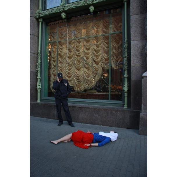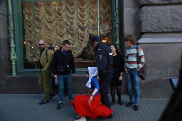 Символичную художественно-политическую акцию провела на Невском проспекте города Санкт-Петербурга активистка Кадо.
