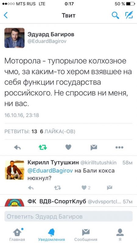 Его твиты уже вызвали бурную реакцию у российских националистов, которые подняли вой. Вот, например, возмущенная статья на сайте «Спутник и Погром».