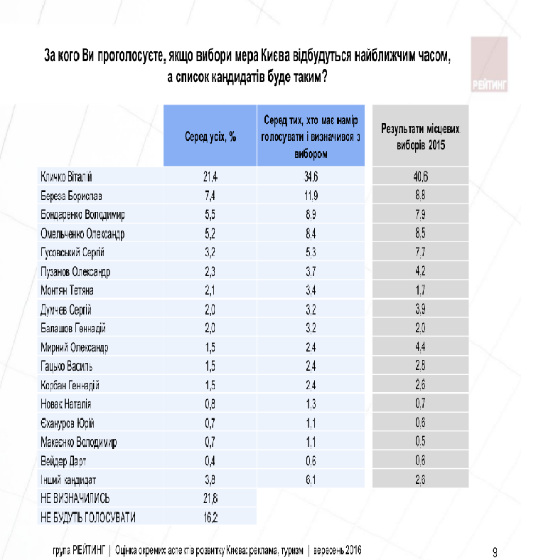Теги: РейтингБондаренко ВладимирГончарова НатальяКГГАКличко