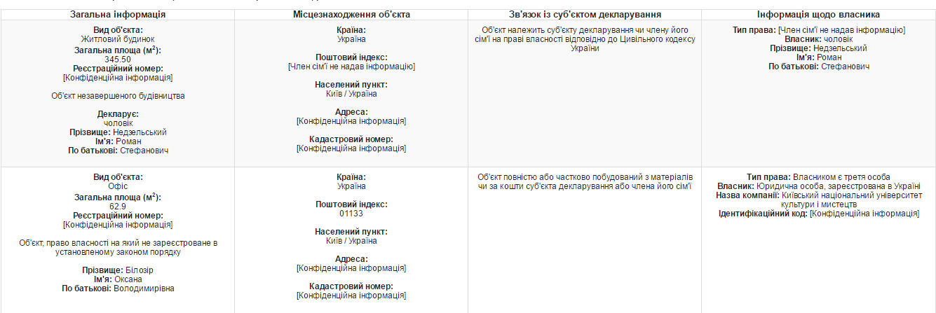 Также в декларации указано, что Роману Недзельскому принадлежит недостроенный дом площадью 345 кв. м. Однако более подробная информация отсутствует.