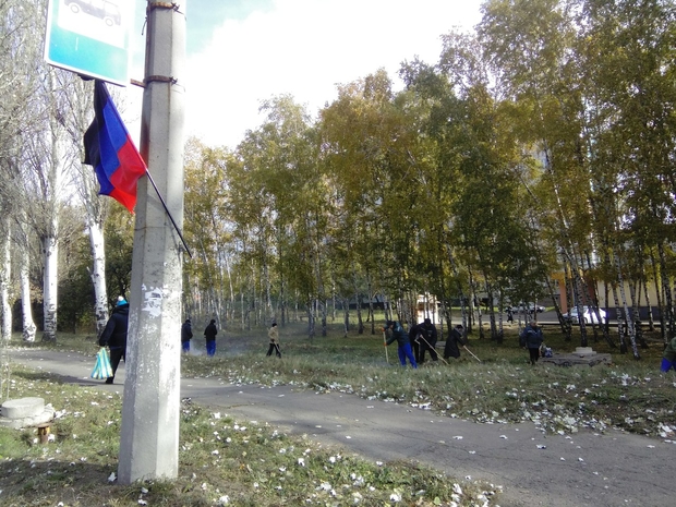 А недавно тех самых бюджетников выгнали улицы подметать, так как по легенде город чистый и уютный и всем он нравится так же, как нравится Александр Захарченко. В одной руке веник, а в другой флаг "ДНР", подмели и успокоились. Все улыбаются, все довольны. Город чистый и любо дорого смотреть!