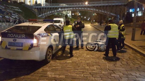 Чоловік одразу викликав поліцейських. Невдовзі один з патрулів побачив чоловіка на скутері, який підходив під орієнтування.Тікаючи від копів скутерист врізався у сферу, що загорожує рух і 70 метрів котився покотом по вул. Інститутській вниз до Хрещатика.