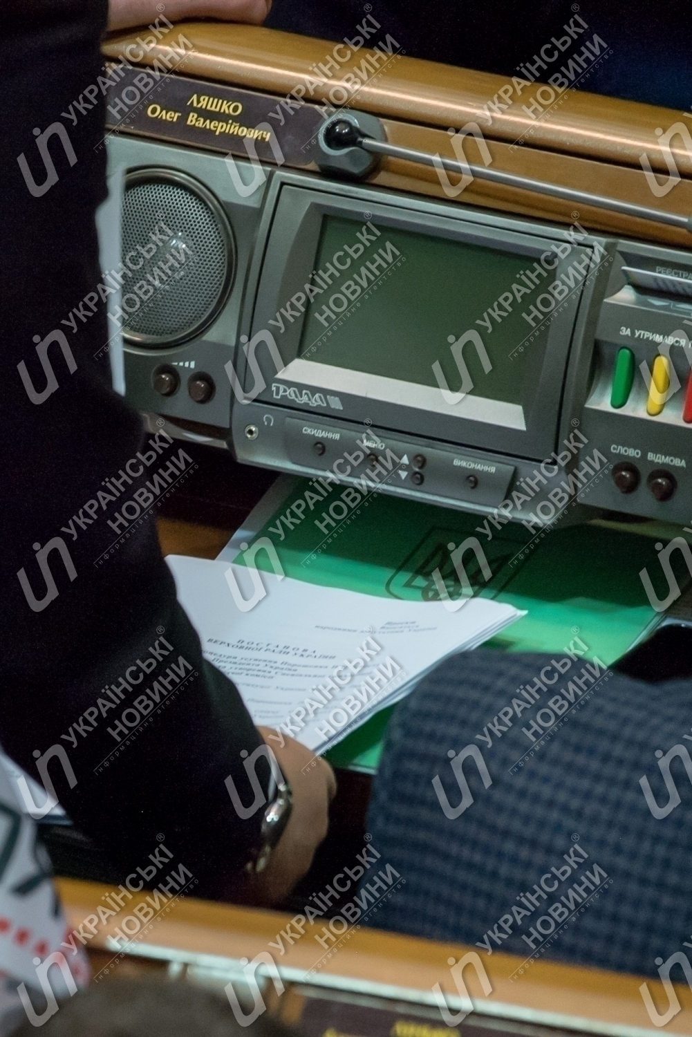 Содержание документа, с которым ходил по сессионному залу депутат, попало в объектив фотокорреспондента Українських Новин Богдана Бортакова.