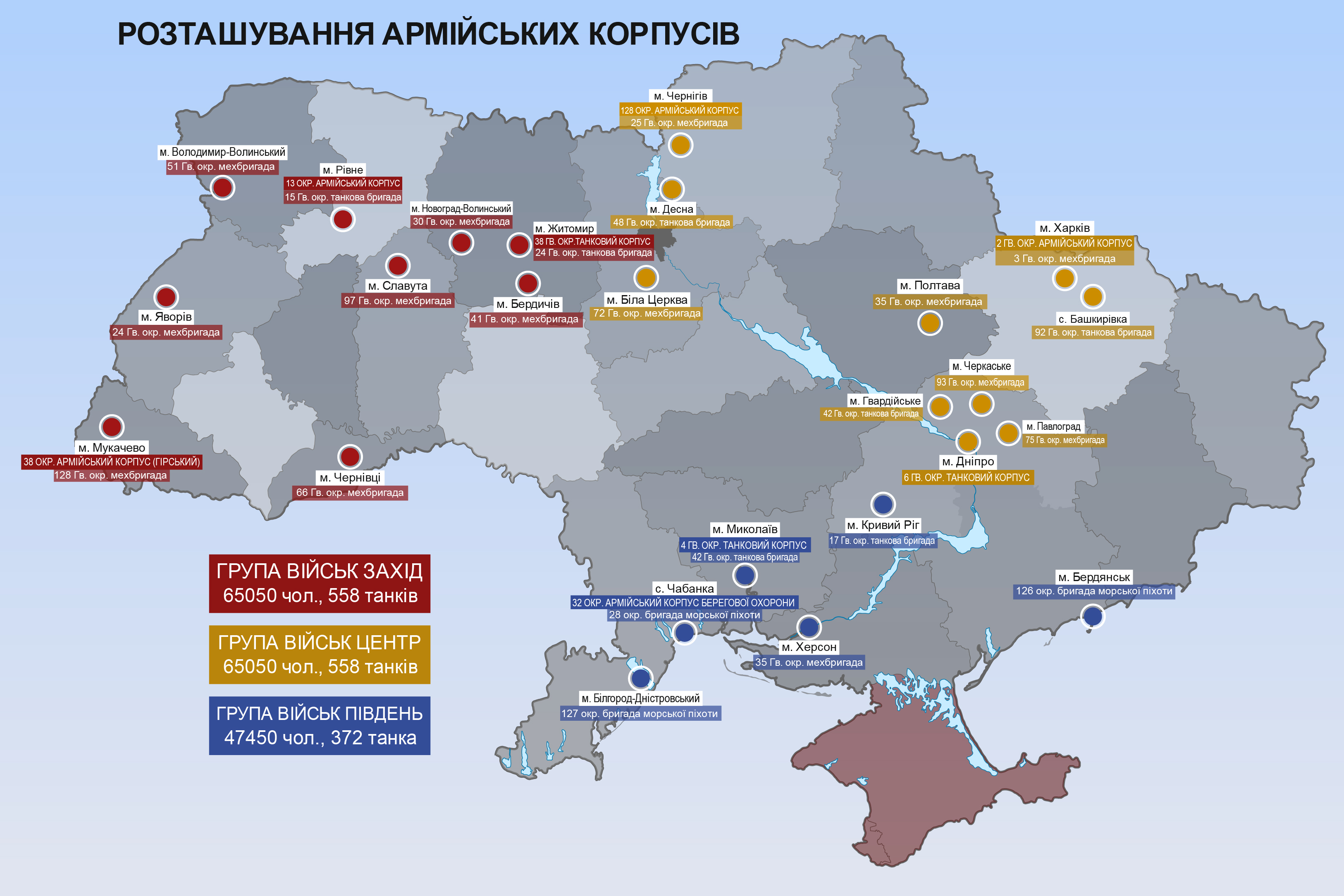 - Чтобы обеспечить безопасность державы - хватит. И выполнить все задачи, которые ставятся Вооруженным силам. В конфликте любого масштаба. Семь корпусов, в корпусе - 17 600 человек. В бригаде 4 тысячи человек. В корпусе - 186 танков. Все! Только нормальных танков, модернизированных. Плюс Нацгвардия должна стать резервной армией. Посадить ее на автомобили и не тратить деньги на эти "Саксоны" списанные. Тот, кто их покупал, явно не водил в атаку танковый батальон и не знает, что их невозможно поставить в боевой порядок. Даже если поставить, они вместе с "Козаками" быстро закончатся.