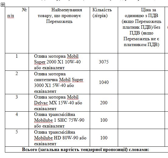 Согласно обнародованным данным, в торгах также приняли участие семь компаний: ООО “Новая Формула” (282 263,50 гривен), ООО “Смарт ойл” (302 876 гривен), ООО “Тема авто” (310 550 гривен), ООО “Энергосети” (340 200 гривен), ООО “Партнер Ав” (344 тыс. гривен) и ООО “Киевагронафтотрейд” (399 999 гривен).