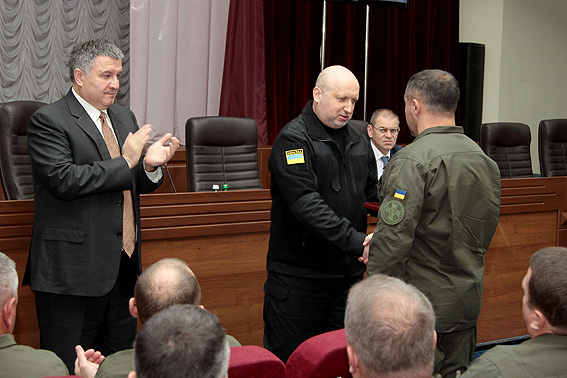 «Із самого початку ми бачили Національну гвардію як високомобільні, професійно діючі універсальні війська, які здатні ефективно працювати як в умовах сучасного бою на фронті, так і результативно діяти в тилу, захищаючи правопорядок і державність нашої країни. І мені приємно констатувати, що саме такою і стала Національна гвардія України», – відмітив Секретар Ради національної безпеки і оборони України Олександр Турчинов, звертаючись до учасників зборів.