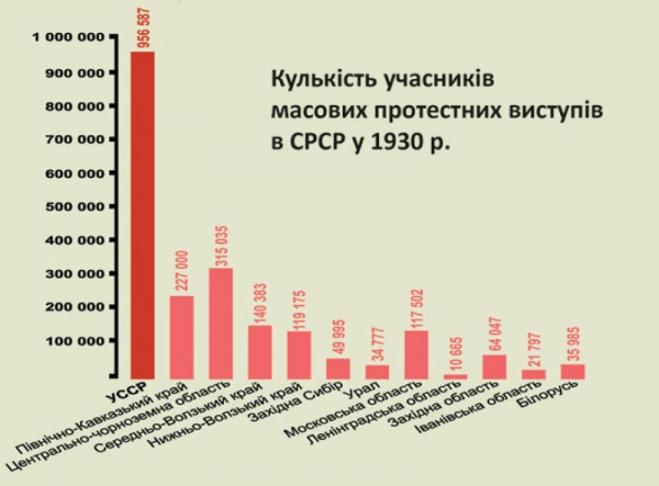 Лише за перші 7 місяців 1932 року органи ГПУ зафіксували в УСРР понад 900 масових виступів, що становить біля 57% (!) усіх антивладних виступів в СРСР за цей час.