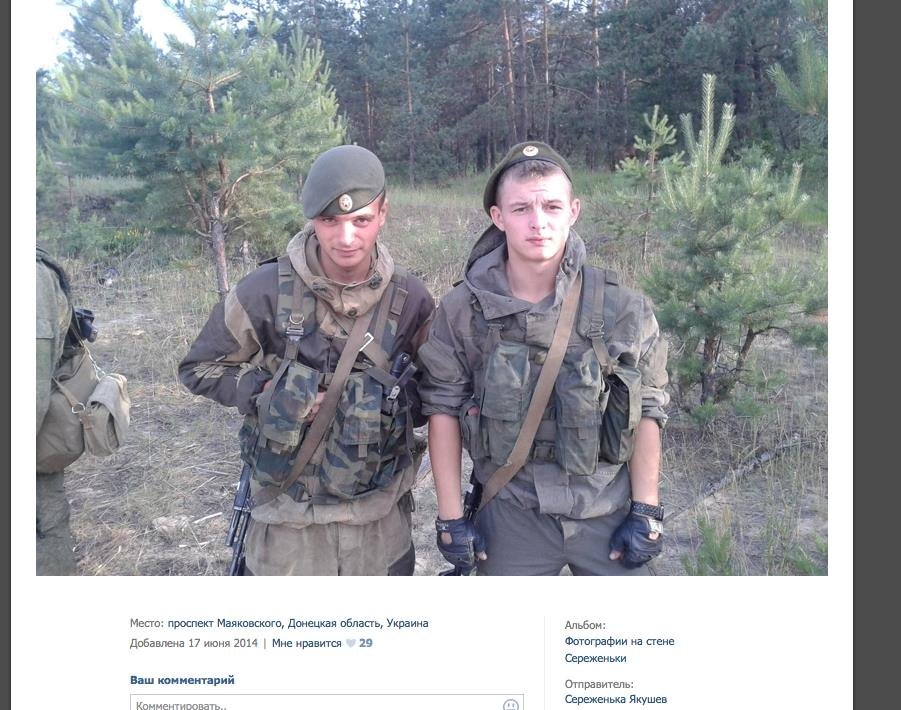 Позже, 17 июня Якушев в первый раз заливает фото с геолоацией: "проспект Маяковского, Донецкая область, Украина"