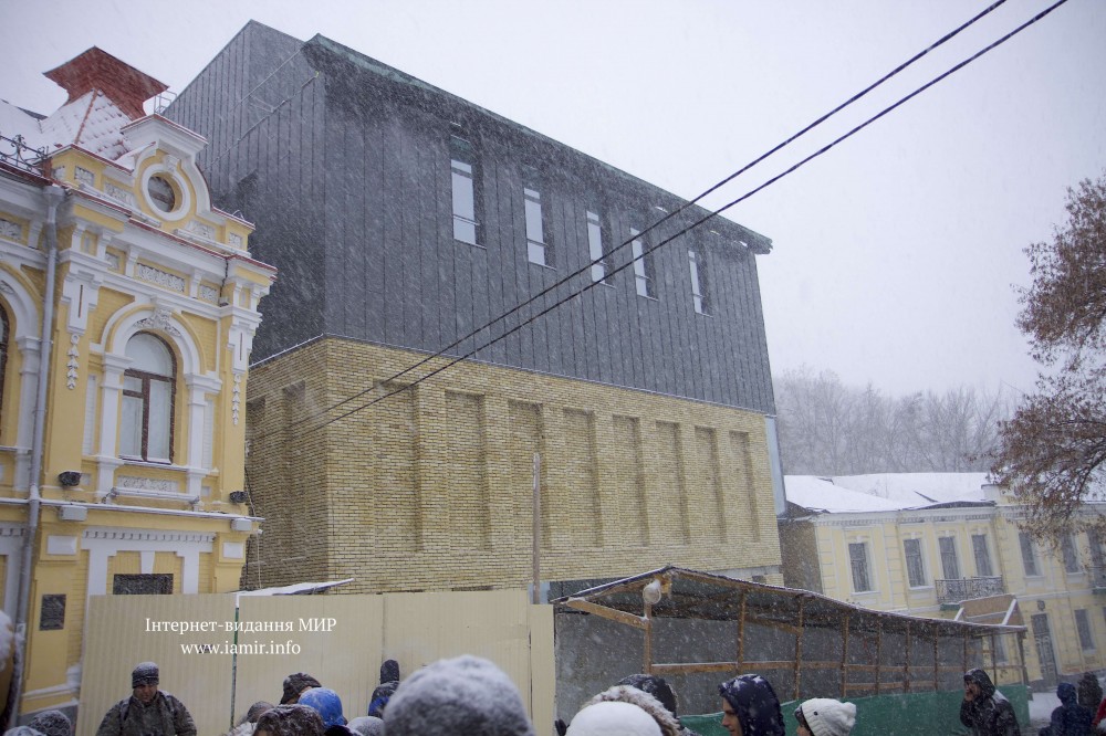 Сегодня утром состоялось открытие фасада Театра на Подоле. Действительность оказалась також же удручающей, как и вчерашние фото в соцсетях, которые подняли общественную волну возмущения. Пользователи уже назвали здание "саркофагом", "крематорием".
