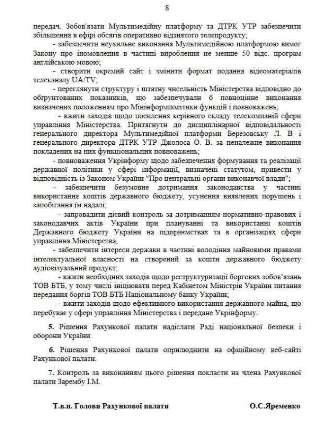 Также свет на причины такой ситуации с ОБСЕ проливает и недавний отчет Счетной палаты Украины, которая провела аудит использования Мининформполитики бюджетных средств, выделенных «на обеспечение информационного суверенитета Украины и функционирование государственных информационных ресурсов». Текст Решения Счетной палаты №23-2 от 8 ноября с.г. - см. сканы.