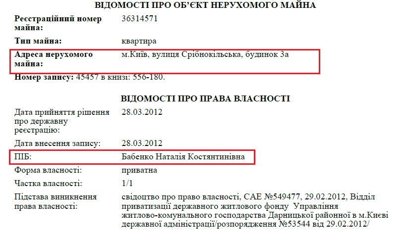 Однако кроме элитной недвижимости на Печерске дочь гр-на Бабенко владеет еще и квартирой площадью 149 кв.м. в новострое на Позняках. Согласно реестра имущественных прав, эту квартиру она также приобрела в 2012 году в возрасте 16 лет.