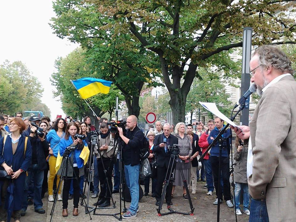 Также акция прошла и в Берлине. Там активисты пикетировалти российское посольство требуя остановить аггресию против Украины.
