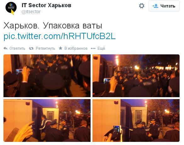 » Харьков. Ватников полностью убрали с площади Свободы и заставили милицию задержать самых агрессивных», — пишут активисты в Твиттер.