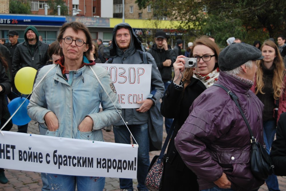В Барнауле против российской аггрессии в Украине митинговал всего один человек - местный активист Артем Косарецкий. Местные власти не дали разрешение на акцию. Прохожие угрожали Артему расправой за надпись на плакате «Сибирь против войны». Несколько воинственных сибиряков таки напали на Косарецкого, но он смог отбиться от нападавших и продолжил пикет с уже немного потрепанным плакатом. В скором времени его по старой сибирской традиции «свинтила» полиция.