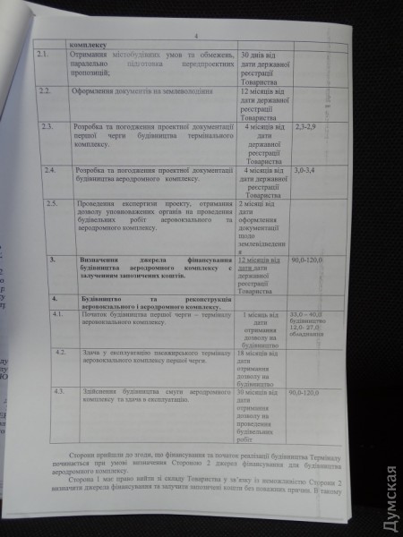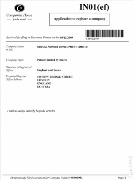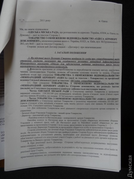 31 октября 2011 года передача имущества состоялась, а 9 ноября стороны подписали генеральное соглашение об основных принципах сотрудничества. 29 декабря 2011 года ООО «Международный аэропорт «Одесса» зарегистрировало права собственности на имущество аэропорта. Между тем, Антимонопольный комитет Украины давал разрешение лишь на приобретение прав пользования активами коммунального предприятия.