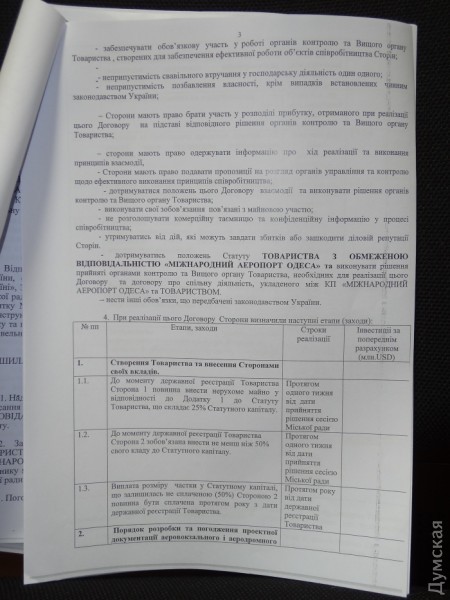 В качестве взноса в уставный капитал ООО горсовет внес основные средства КП «Международный аэропорт «Одесса». При этом с целью уменьшения доли Одесского горсовета в созданном предприятии вышеуказанные служебные лица (Алексей Костусев и другие) использовали вывод о стоимости имущества, сделанный ЧП «Бюро Маркуса». Документ этот основывался лишь на балансовой стоимости имущества аэропорта (раз в десять ниже рыночной) и на момент принятия решения уже не был действительным.