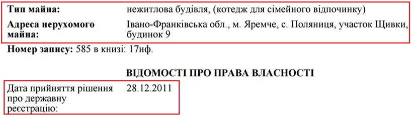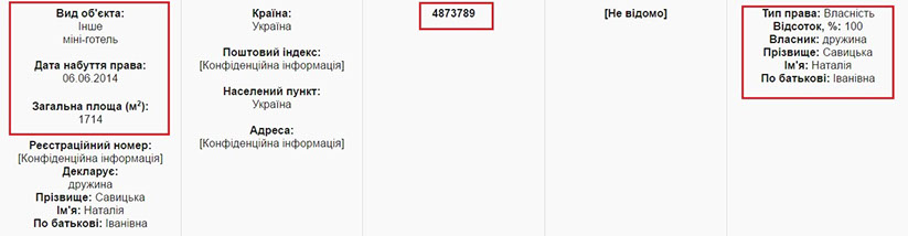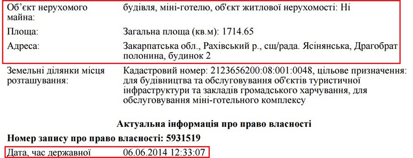 В 2014р. чималий список нерухомості сім’ї поповнився ще міні-готелем на гірськолижному курорті Драгобрат, площею 1714 кв.м. Придбання останнього обійшлося дружині судді майже 5 млн.грн.