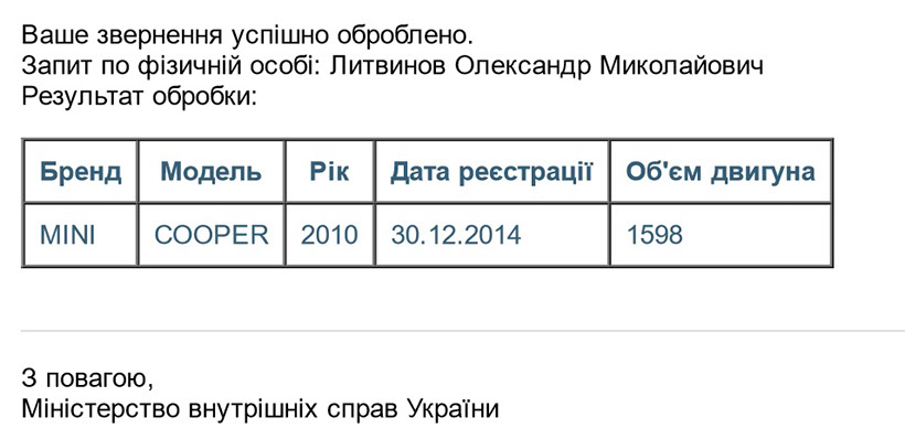 Згідно декларації пана Литвинова за 2015 рік єдиним майном, яким він володіє є автомобіль MINІ COOPER 2010 року випуску.