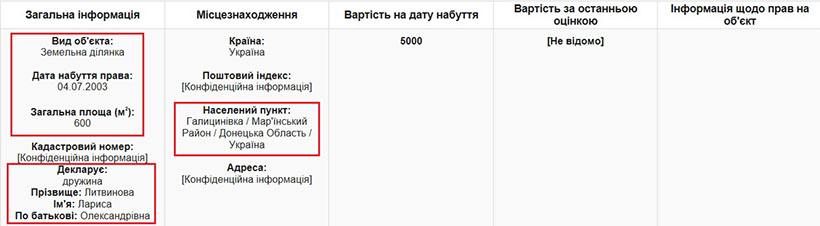Дружина пана Литвинова володіє лише невеликою земельною ділянкою в селі Галицинівка Донецької області.