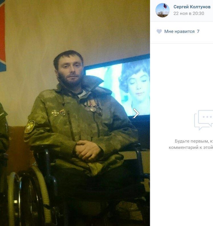 Тогда сепаратист позировал на фоне российской техники и триколора, а сегодня он безногий и никому не нужный инвалид, которого Плотницкий отметил инвалидной коляской и тремя ничтожными медальками недогосударства.