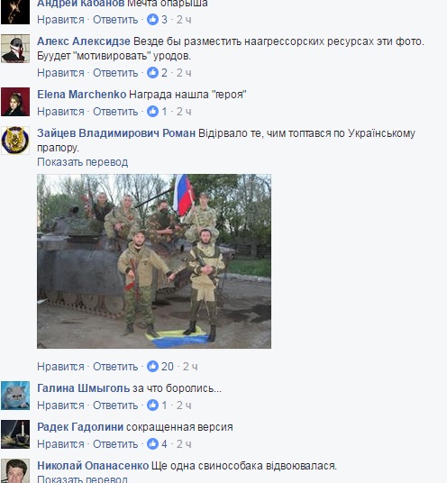 Отметим, что фото боевика вызвали только ненависть и справедливые замечания подписчиков блогера. Большинство людей писали, что это возмездие сепаратисту за то, что пришел на чужую территорию убивать мирных украинцев.