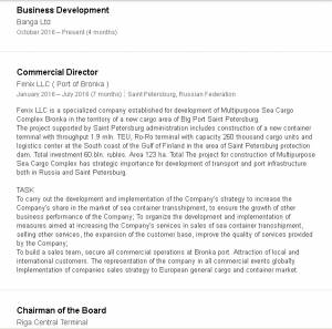 Согласно данным латыша из системы Linkedin, в данный момент он работает в компании Banga Ltd, которая занимается изготовлением и продажей консервированных шпрот, салаки, сардин, а также других даров Балтийского моря.