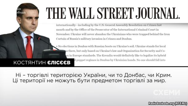 Авторская полоса олигарха во влиятельном западном издании вызвала большой резонанс в Украине. Через несколько дней на страницах того же издания Пинчуку отвечает заместитель главы Администрации президента Константин Елисеев. «Компромиссы на условиях России — это неправильная политика. Один из тяжеловесов новой американской администрации как-то заметил: „история учит, что слабость порождает зло“ (это известные слова избранного вице-президента США Майка Пенса, сказанные еще в ходе избирательной кампании — ред.). Такой подход никогда ни не приносил к устойчивому миру, и не спасал жизни. Скорее, наоборот, такой подход всегда подпитывает большую агрессию и вызывает новые человеческие страдания», — говорится в публикации.