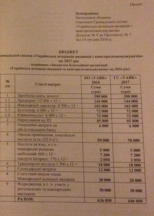 Ілюстрація 2 Бюджет ГС "УАВК" на 2017 рік