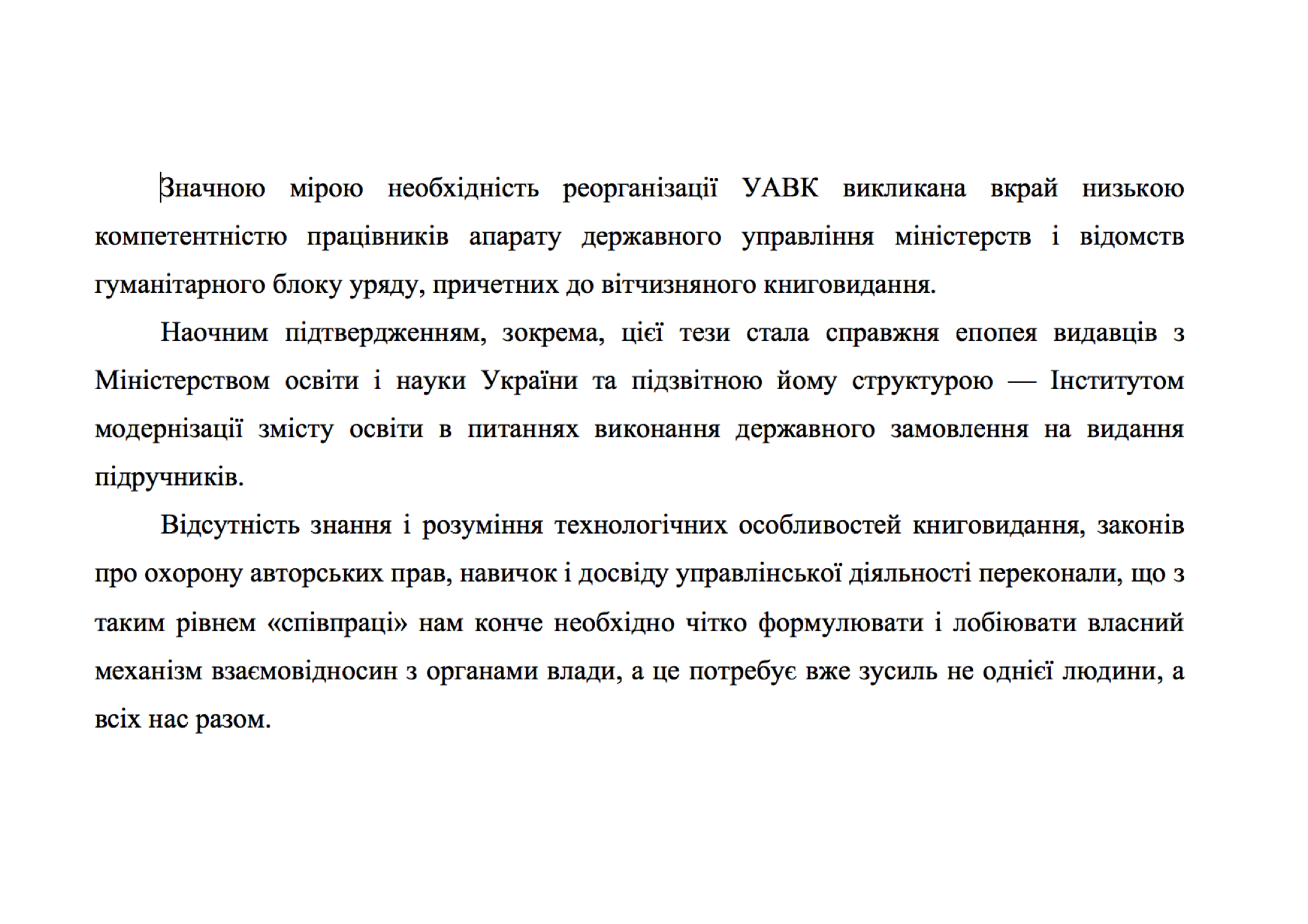 Іллюстрація 1 - уривок звернення Афоніна до видавців з приводу необхідності реорганізації Асоціації.