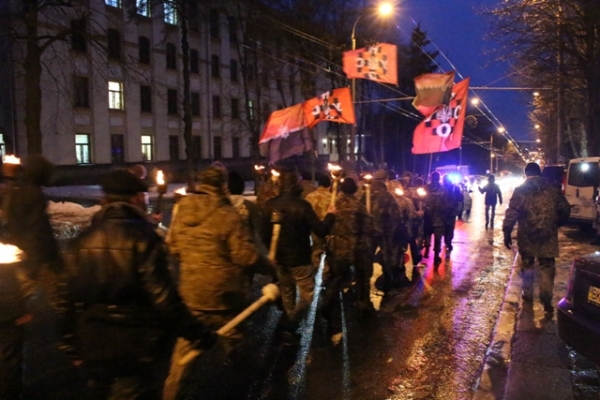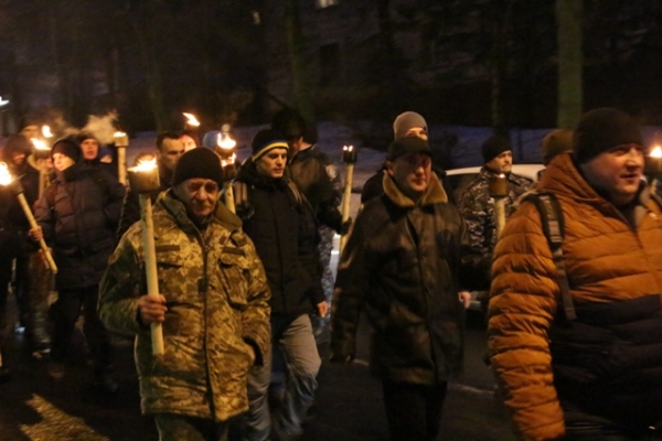 В одну колону зібралися близько сотні людей: представники громадських організацій УНСО, Правий Сектор, велика кількість волонтерів, а також члени спілки письменників Рівненщини. Близько шостої години вечора люди, більшість з яких в камуфляжі, організувались в колону та запалили смолоскипи.